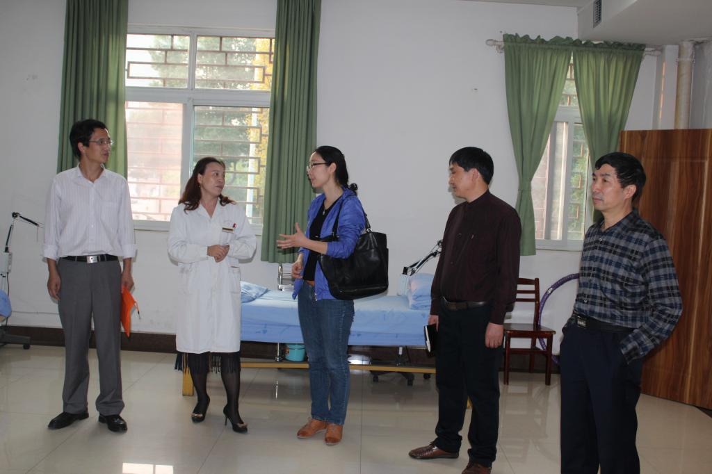 下午16时,调研组一行又来到十堰市中医院,中医院副院长赵和平、精神康复科主任艾春启接待了调研组一行3人,艾春启主任就专业方向设置、专业课程设置提出了建议,并明确表示十堰市中医院支持tyc33455cc太阳成集团应用理学专业建设工作。在艾主任陪同下,调研组参观了中医院心理咨询室、心理康复治疗室、宣泄室等。