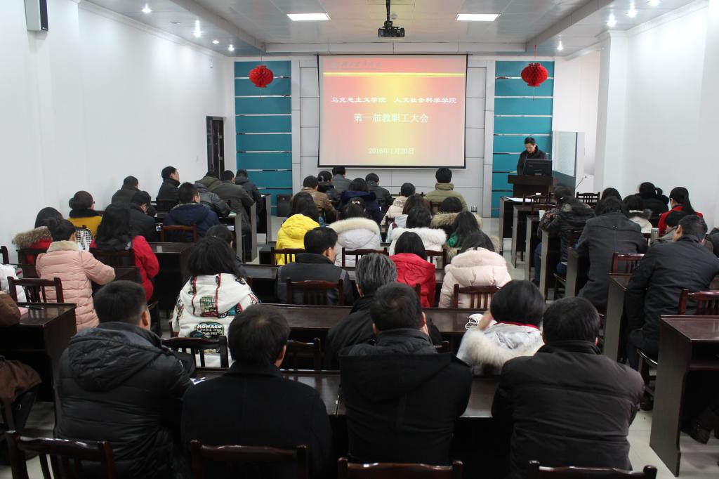 本网讯(通讯员 孙磊)1月20日下午 ,太阳集团tyc33455 人文社会科学学院第一届教职工大会暨工会会员大会在图书馆一楼学术报告厅召开。