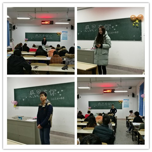 11月27日晚,人文学院在5607教室开展了“感恩有你”主题班会活动。在感恩活动中,应用心理学班级的每个同学都分享了自己的感恩小故事,以表达自己的感恩之心,不少同学的故事感人肺腑,赢得了大家自发的掌声。其中,吴昊对姥爷的记忆、兰家松分享的朋友父亲受伤后获得大家赞助的真实故事、动人心弦,催人泪下。