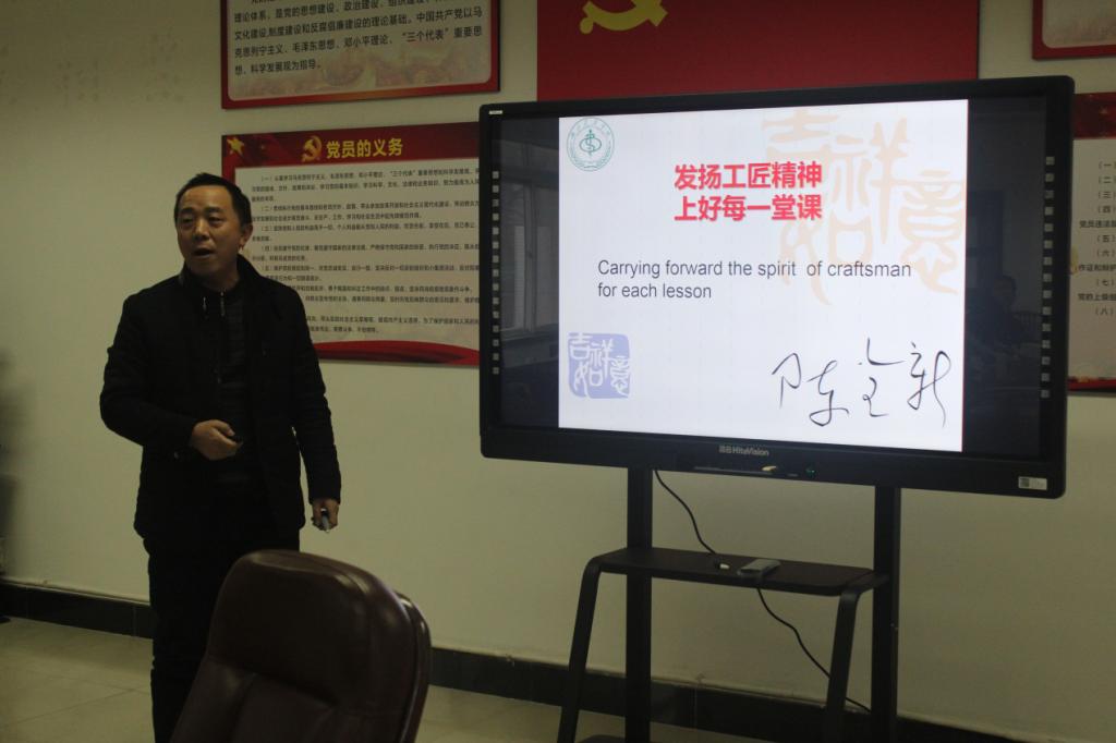 随后,每位思政课专职教师就三位兼职老师授课的内容和形式进行了点评并提出了改进的意见和建议。思政课部主任陈全新也结合自己多年来的教学经验和感悟,做了《发扬工匠精神,上好每一堂课》的主题发言,认为老师作为“教书匠”就应该发扬工匠精神,并将工匠精神概括为“十字秀”:认真到极致,执着到单纯,最后还建议专兼职老师都要做到:认真钻研专业理论,精心进行教学设计,执着打磨PPT课件。只有这样,才能上好每一堂课。