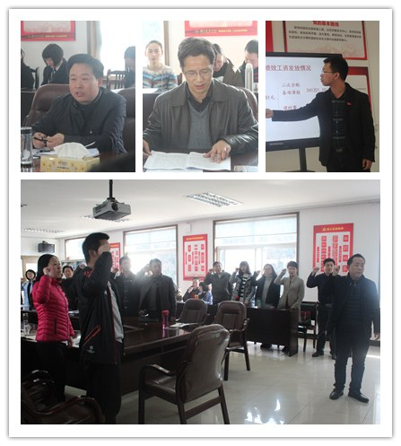 本网讯(通讯员 韩丽萍)2月16日下午,太阳集团tyc33455、人文社会科学学院在学院四楼党员活动室召开2017年2月份主题党日活动暨全体职工大会。学院领导、全体教职员工参加了活动。
