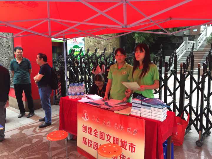 9月10日一天,人文学院12名学生参与了校园文明行为督导和创文知识宣传活动,志愿者们身穿绿色志愿服,佩戴红色袖章,在北区、南区、药护三个校区巡逻。