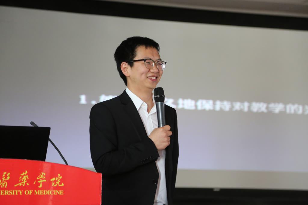 道德讲堂活动围绕唱德、立德、明德、品德、传德、润德六个环节开展。在公益歌曲《让爱多一点》中拉开了本期道德讲堂的帷幕。主讲人翟成蹊老师从“为什么对教学感兴趣”、“如何做好教学”、“教学背后的另一面”三个部分与在场的师生讲述了自己潜心教学的点点滴滴。他讲到,在很小的时候就有对“教师”的英雄情结,喜欢经常向老师提问题,喜欢思考,不想做只会念课本或者ppt的老师。后来,参加工作后,在从教6年中,一直秉承“好奇心、上进心、同理心、责任心”理念,不断探索,勤奋钻研,勇于创新,第一个在我校开展翻转课堂,在课程设计中融入BOPPPS,追求课堂高的到课率、抬头率、入脑率。每一次课都当做一件艺术作品,从内容、形式、教学方法等方面反复推敲、精心打磨,经常在走进教室前1分钟还在更新教学内容。同事,翟成蹊说到,教学最后一公里很重要,重视对学生作业、知识应用的提升训练,自己举办了“ACT训练营”。在讲到教学背后的一些感受时,讲了自己如何将工作与生活融为一体,这除了需要艰辛的付出外,也需要家人、同事、学生、朋友的大力支持与帮助。