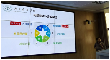 其次,思政课部李亚主任围绕问题链式教学设计进行展示。从时代之变、时局之变、教育应变导入,深入探讨课堂创设情境、发现问题、讨论问题、明确目标、解决问题、感悟问题、发现新问题的问题链式六步教学法。同时李亚老师结合《中国近现代史纲要》课程中“资本—帝国主义对中国的经济掠夺”这一部分内容开展示范讲解,详细介绍了导入新课、讲授内容、巩固练习、总结归纳、作业布置等每一环节问题的生成与科学设计,环环相扣,分享了课堂教学问题链设计和实施的有效路径和优秀经验。