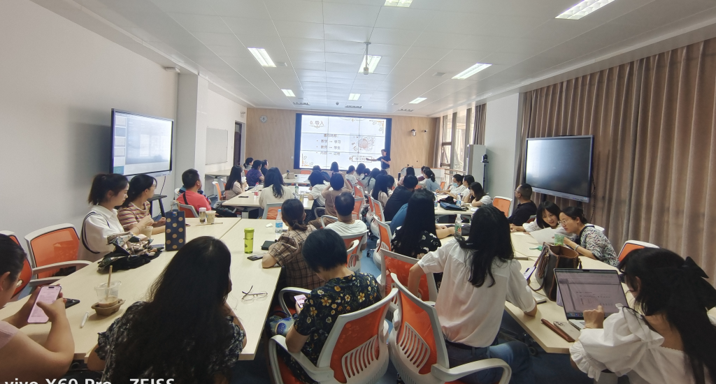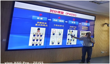 随后,陈全新教授采用对分课堂“六环教学法”进行教学展示,围绕对分课堂是什么、为什么、怎么做三个方面详细介绍了对分课堂六环教学模式。陈全新教授结合自身课堂实例从隔堂对分、教师精讲、个人独学、小组讨论、全班交流、总结作业等六个方面进行了示范,为参加讲座的教师带来了生动、实用的教学模式创新经验分享。