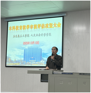 赵万红传达了学校诊断性评估教学工作专家反馈会议精神,要求学院全体教职工做好访谈座谈、教学档案调阅、听课看课等准备工作,反馈了跟学院相关的工作要求以及问题和整改要求,要求全体教师务必严格遵守师德师风要求,以良好的精神面貌迎接教评。教学办主任魏晨对学校调阅教学档案发现的问题进行了说明和反馈,并对工作流程进行了培训。院办主任肖飞对学校安排的访谈组、听课组、档案组相关工作流程进行了培训。