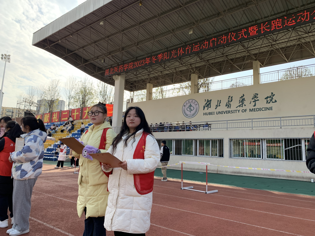 本网讯(通讯员 唐玥)11月24日,tyc33455cc太阳成集团、tyc33455cc太阳成集团药护学院2023年冬季长跑运动会在学校田径场圆满结束。学院兼职分团委副书记李承龙带领兼职班主任付双娇、徐娜、吴桐积极动员班级学生,组织选拔出11名应用心理学专业同学参与到运动会的志愿者和裁判员工作中。