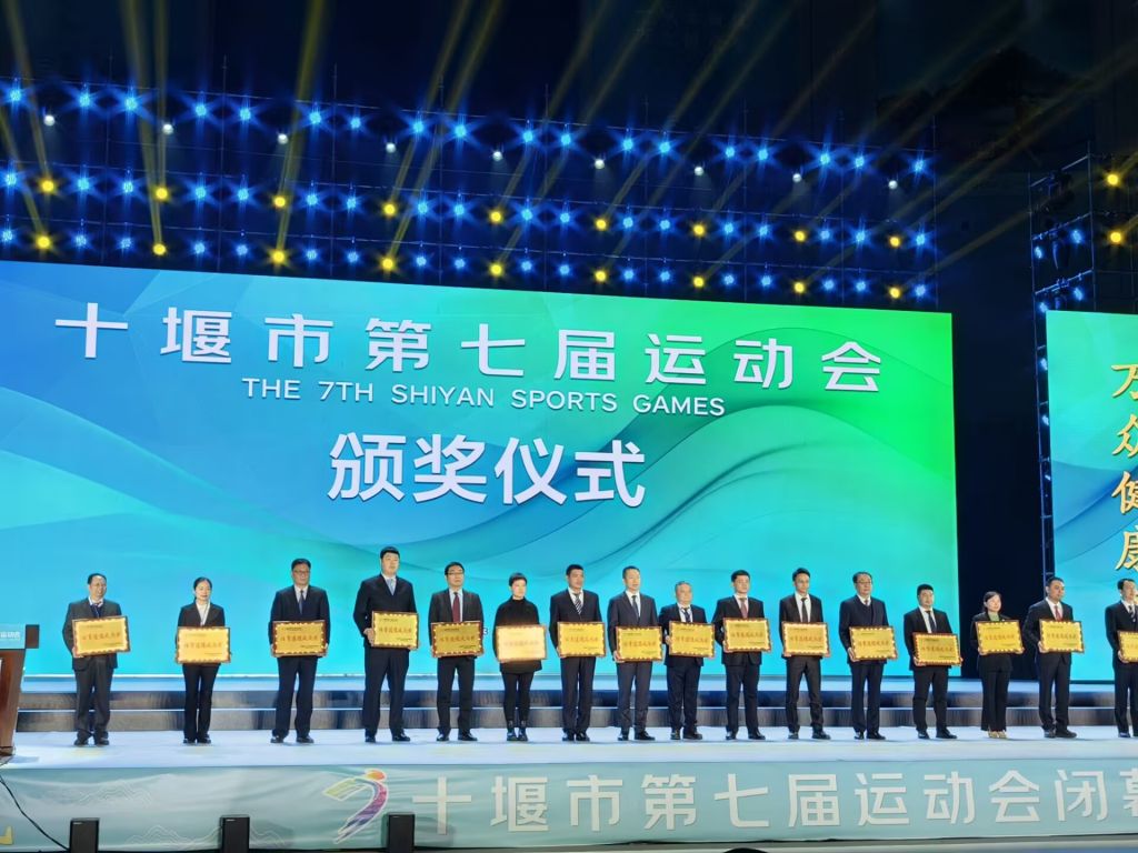 本网讯(通讯员 朱红军)2023年12月3日晚19:30,十堰市第七届城市运动会在奥体中心综合馆顺利闭幕,我校获得“承办贡献奖”和“体育道德风尚奖”,体育课部主任朱红军、校工会办公室主任唐念东及教师代表朱钊参加闭幕仪式。