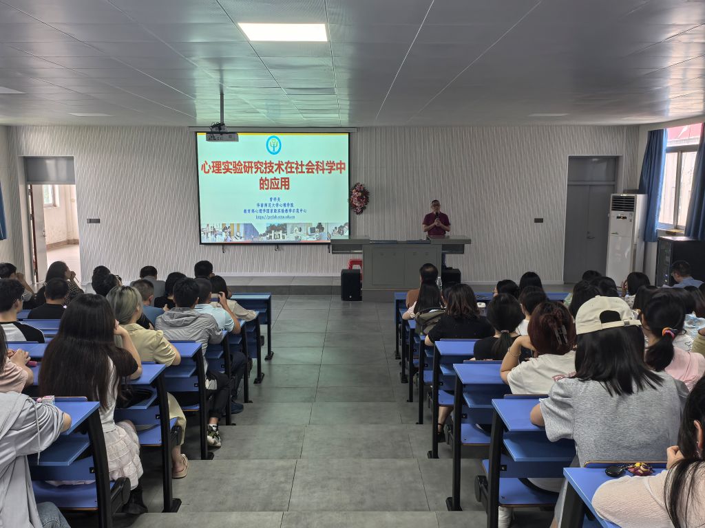 本网讯(通讯员 柴晓运)2024年5月30日下午我校第九届科技节活动暨医学人文社科讲座系列之四十七讲在3401教室举行。华南师范大学心理学院心理学实验中心主任、心理学国家级实验教学示范中心副主任曾祥炎应邀为太阳集团tyc33455和人文社会科学学院师生做了题为“心理学实验技术在社会科学中的应用”的报告。应用心理学系主任柴晓运博士主持报告会,共120余名师生参加了交流会。