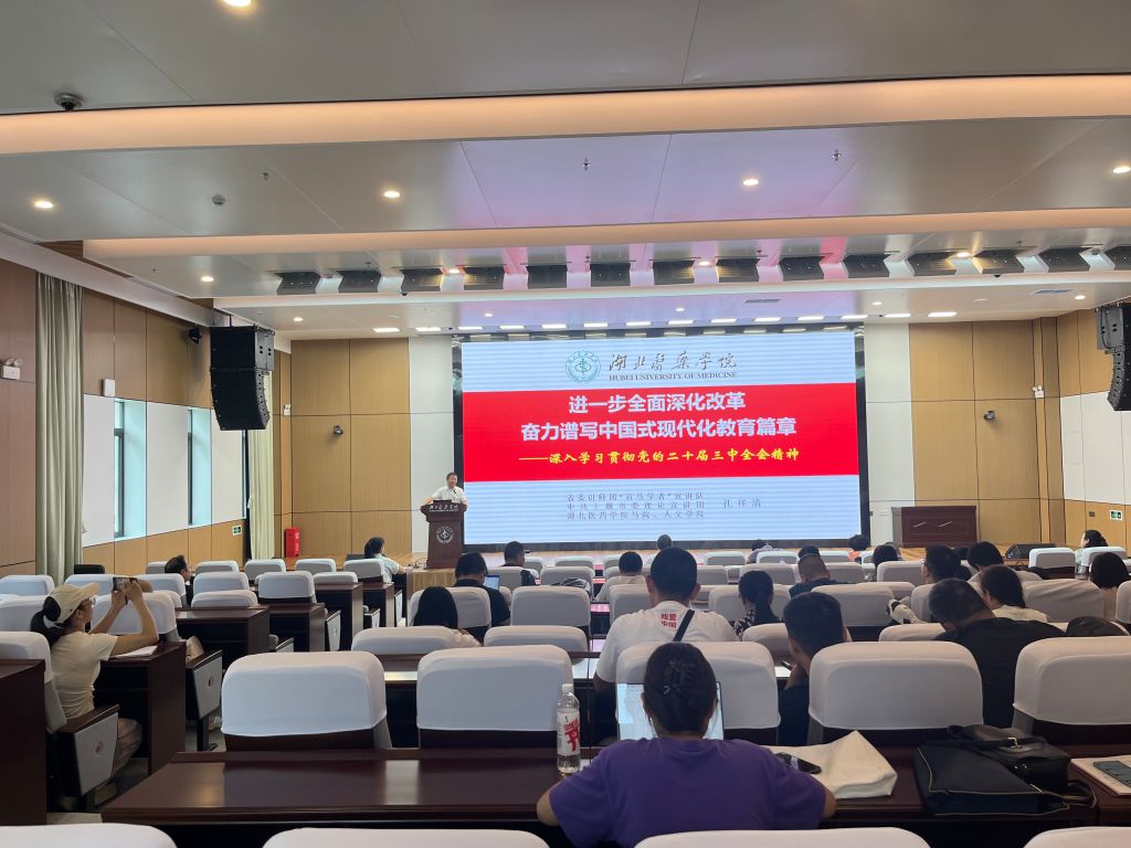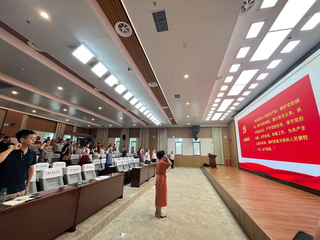 在完成集体奏唱国歌、宣读入党誓词后,陈全新领学习近平就中央和国家机关学习贯彻党的二十届三中全会精神,推动机关党建高质量发展作出重要指示,太阳集团tyc33455副院长孙磊领学了《中共十堰市委关于认真学习宣传贯彻习近平总书记重要回信精神的通知》,孔祥清进行了题为《进一步全面深化改革 奋力谱写中国式现代化教育篇章》的党的二十届三中全会精神宣讲。