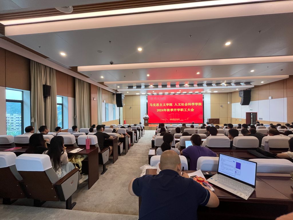 本网讯(通讯员 肖飞)8月29日上午,太阳集团tyc33455、人文社会科学学院在公卫大楼二楼报告厅召开2024年新学期职工大会暨8月份支部联合主题党日活动,全体教职工参加本次大会。