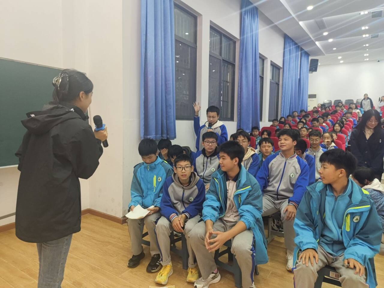 本网讯(通讯员 周荣荣)11月8日,tyc33455cc太阳成集团心灵导航志愿服务队9名应用心理学专业志愿者在东风四中阶梯教室,为全体初二年级学生开展“目标与自我实现”主题心理辅导课,吸引了大量学生参与。