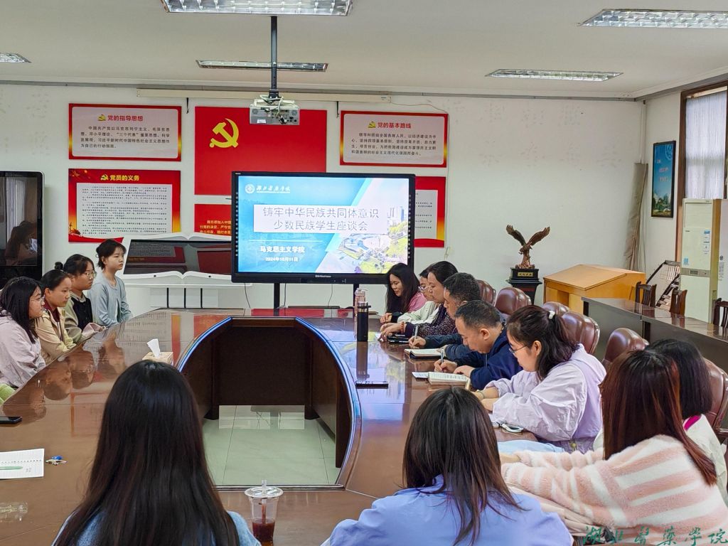 学院副院长孙磊作了铸牢中华民族共同体意识的政策解读,分别从政治、文化、经济、社会、心理五个方面阐述了中华民族共同体的内涵。辅导员韩丽萍领学了习近平总书记在全国民族团结进步表彰大会上的重要讲话精神。座谈交流环节,与会的各少数民族学生代表踊跃发言,讲述自己在校学习生活的成长收获以及遇到的疑问和困惑。与会领导老师们认真倾听,对学生的问题积极给予解答。