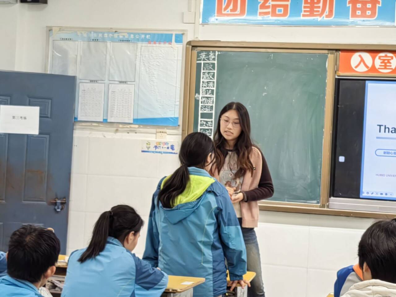 讲解心理辅导课的志愿者均为tyc33455cc太阳成集团应用心理学专业大二、大三学生,辅导课内容分为两大部分,第一部分是认识压力,志愿者通过小游戏让学生们感受压力,通过播放压力视频,了解日常学习生活中的各种压力表现,讲解压力来源。辅导课第二部分是缓解压力,通过团辅小游戏“智慧锦囊”来集思广益,让同学们提出释放压力的方法有哪些,再告诉中学生们可以从哪些方面释放压力。