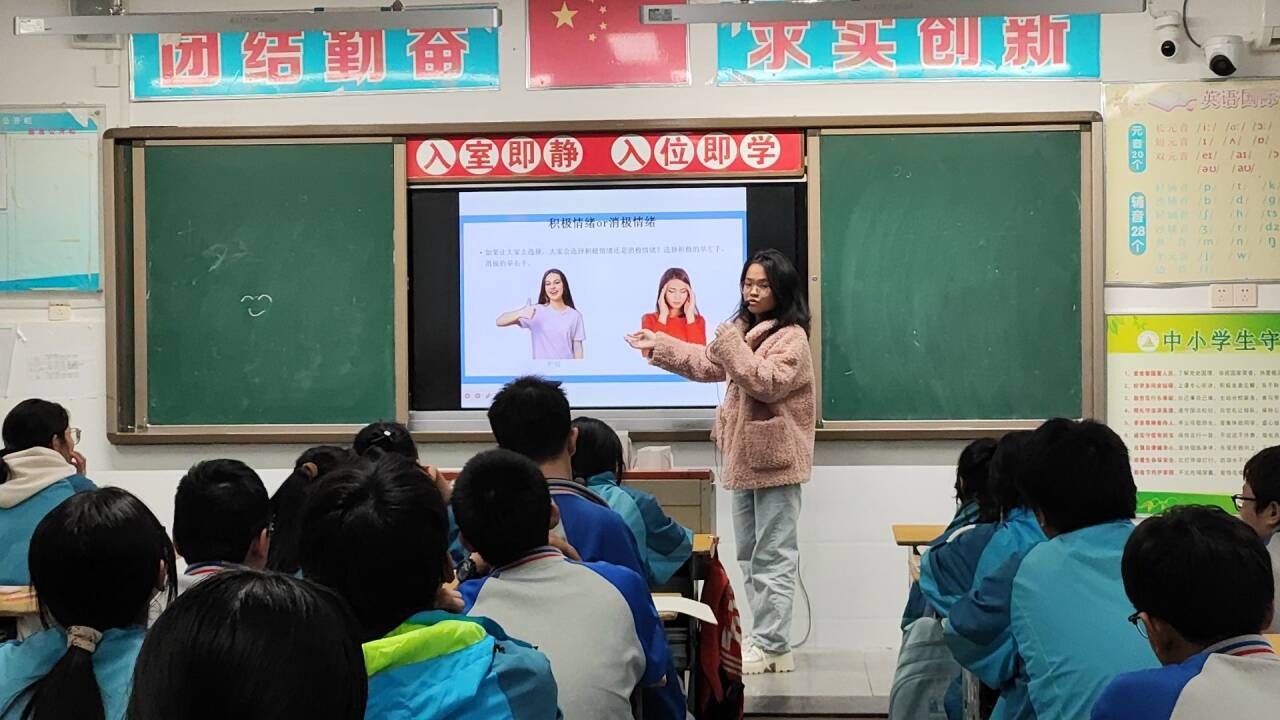 本网讯(通讯员 周荣荣)11月1日下午,tyc33455cc太阳成集团心灵导航志愿服务队3名应用心理学专业志愿者为东风四中初三年级的三个班级开展“暂别焦虑,与情绪和解”主题心理辅导课,帮助初中生们摆脱焦虑,正确认识、处理自己的情绪问题,提高心理健康意识。