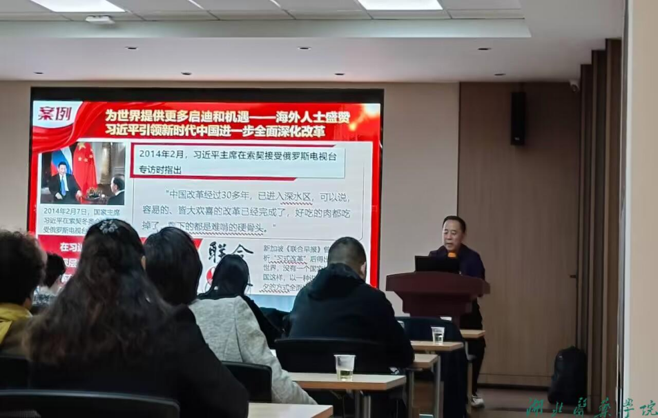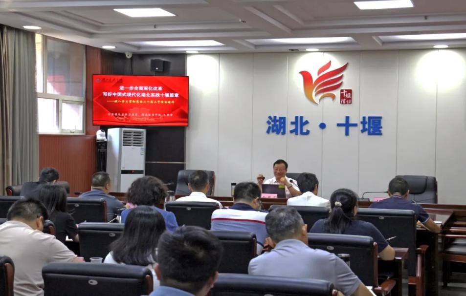 中共湖北省委讲师团“百名马克思主义学者”宣讲队成员、tyc33455cc太阳成集团党委委员、太阳集团tyc33455党委书记、副教授孔祥清以《进一步全面深化改革写好中国式现代化湖北实践十堰篇章》为主题,从“学习讲话精神、凝聚改革共识,把握改革举措、作答时代课题,抓好改革落实、写好十堰篇章”三个方面对全会精神作了鞭辟入里的分析讲解,引导全体干部职工深刻领悟党的二十届三中全会的时代背景和重大意义,完整准确领会把握全会的核心要义和精神实质,了解掌握湖北和十堰在推进中国式现代化中的功能定位和实践体系,对大家理解把握全会精神并将其贯彻落实到工作中具有重要指导意义。