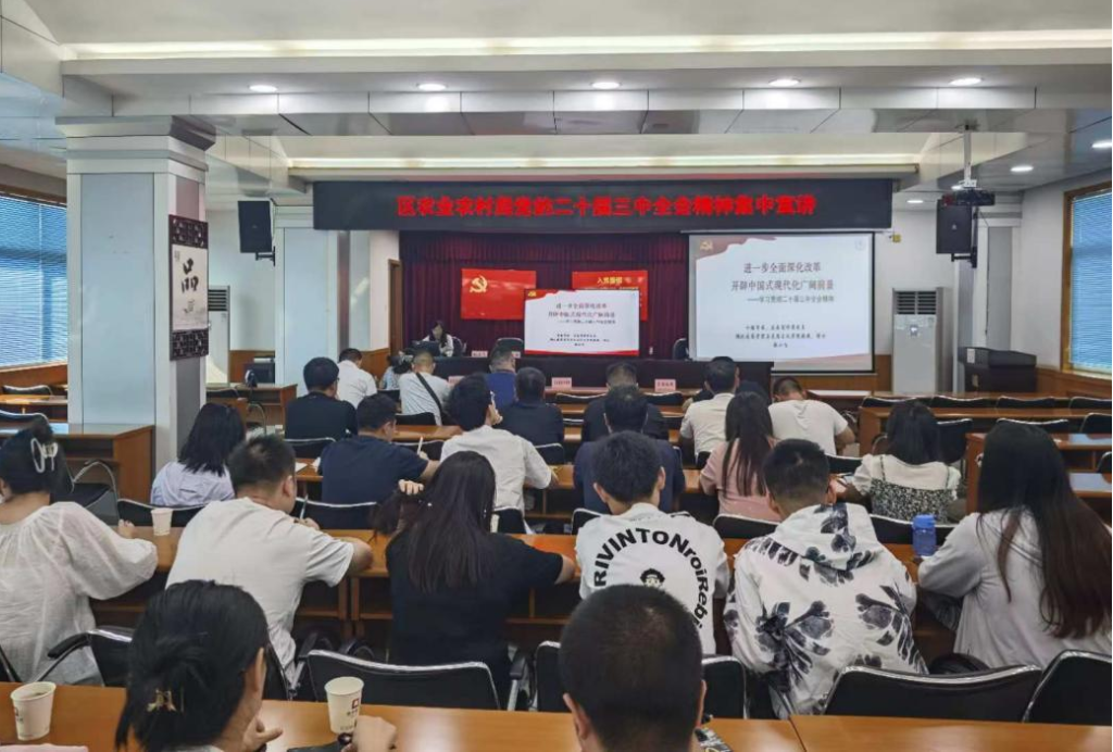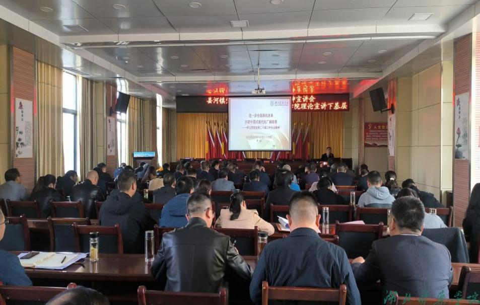 10月28日,孙磊博士以《进一步全面深化改革,开辟中国式现代化广阔前景》为题,介绍了党的二十届三中全会基本情况,从党的二十届三中全会的重大意义、习近平总书记在党的二十届三中全会上的重要讲话精神、进一步全面深化改革的重大举措、贯彻落实党的二十届三中全会精神的基本要求等四个方面,对党的二十届三中全会精神进行全面解读。在宣讲中,孙磊结合县河实际,将全面深化改革和推动县河镇各项工作高质量发展紧密联系起来进行讲解,提出要全面推进县河产业振兴、人才振兴、文化振兴、生态振兴、组织振兴,积极探索新时代乡村振兴的新路径新模式,在推进中国式现代化湖北实践十堰篇章中贡献“县河”力量,展现“县河” 作为。