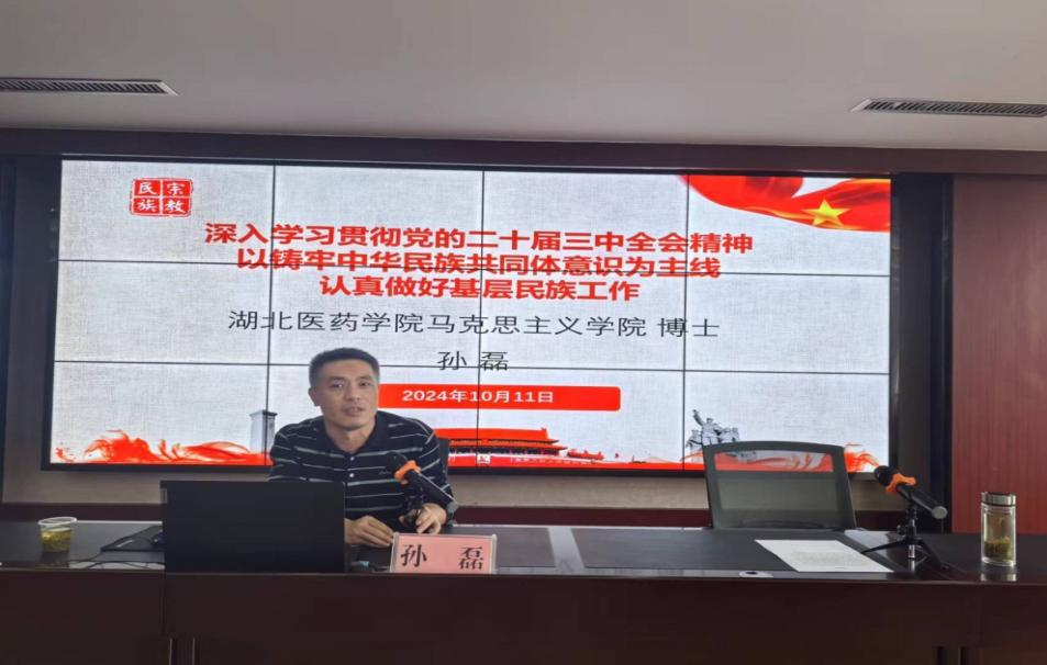 11月8日,十堰市党校(行政学院)系统召开深入学习宣传贯彻党的二十届三中全会精神理论研讨会。孙磊博士以《铸牢中华民族共同体意识》为题目,聚焦党的二十届三中全会精神,从新时代党的民族工作历史方位出发,对铸牢中华民族共同体意识的深刻内涵、重大意义、理论渊源、基本任务、实践路径、根本保障等方面进行深入浅出的讲授,进一步激发了党员干部在新时代强国建设、民族复兴新征途上,铸牢中华民族共同体意识,增强“五个认同”,为实现中国梦汇聚磅礴力量。