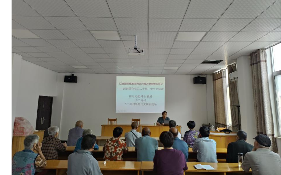 尉迟教授以四个问题的方式讲解了党的二十届三中全会是一次什么样的会议,这次会议在党的历史上、在中国式现代化建设历史上有什么重要意义,这次会议对于农村振兴有哪些重要战略安排,以及我们作为个体对于中国式现代化有什么可以有所作为的地方。通过宣讲,百二河村干部群众对党的二十届三中全会精神有了更加深入的认识,对中国式现代化有了更加全面的理解,更加坚定了对中国特色社会主义道路的信心,对自己的美好生活有了更加殷切的期待。宣讲后,尉迟教授还与部分群众进行了交流。