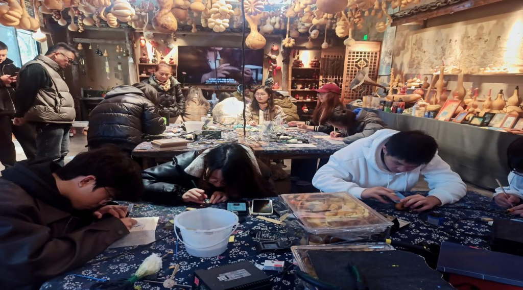 最后,学生们还参观了非遗文化馆,近距离感受中国传统的非物质文化遗产。在动手制作传统烙画和中医香囊的过程中,学生们不仅体验了手工艺的乐趣,也加深了对传统文化的尊重与理解。