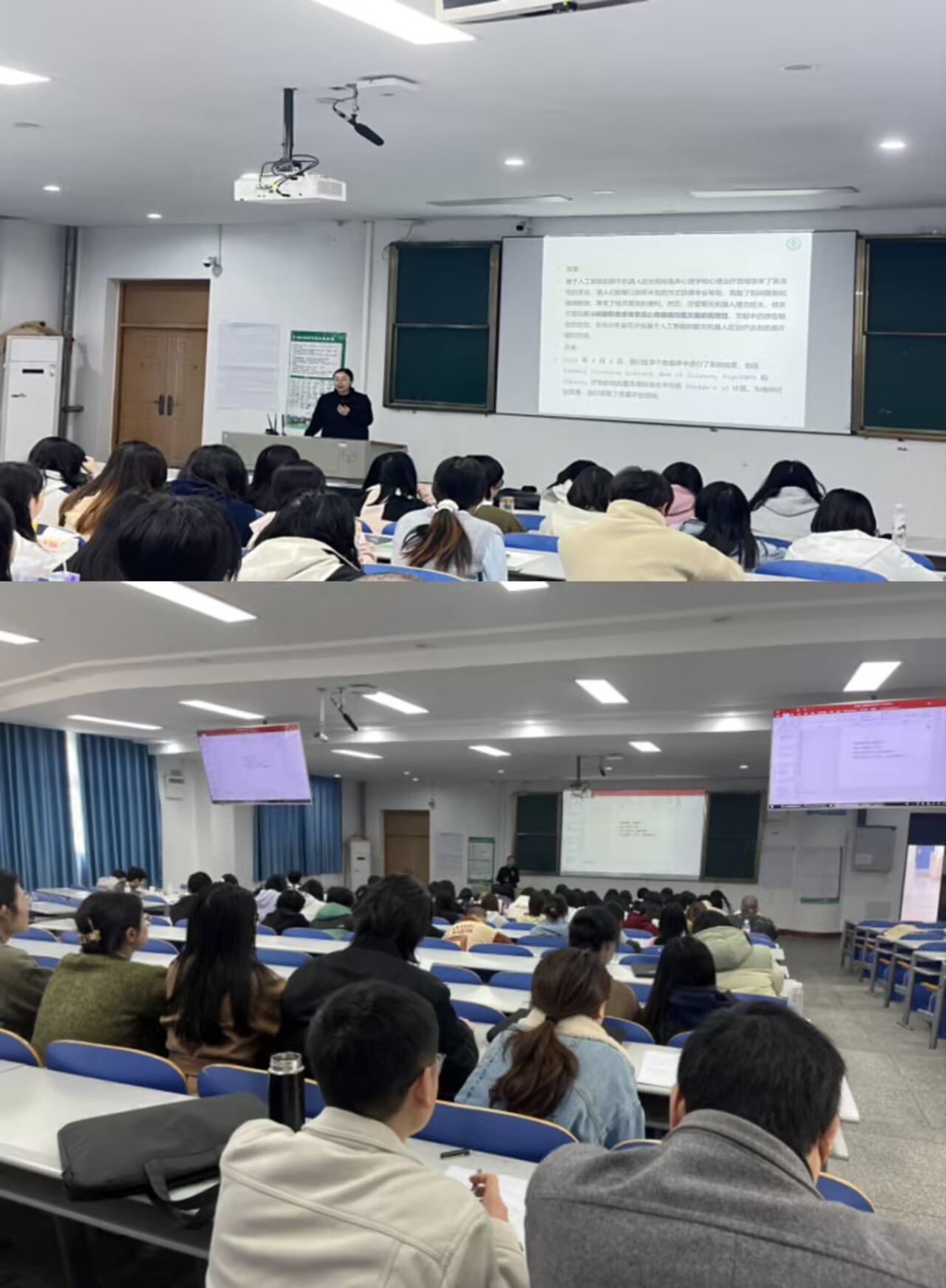 王娟老师首先探讨了人工智能在缓解短期焦虑症状中的作用及解决抑郁和心理健康问题方面的有效性。随后,通过回顾上节课的授课内容延伸至本节课的教学内容。课堂上王娟教授充分调动学生的积极性,让其两两之间进行模拟咨询场景的训练,从而提升学生们做心理咨询时的倾听、共情、提问等技巧的运用,让在场师生对心理咨询整合技术有了更直观、深刻的认识。