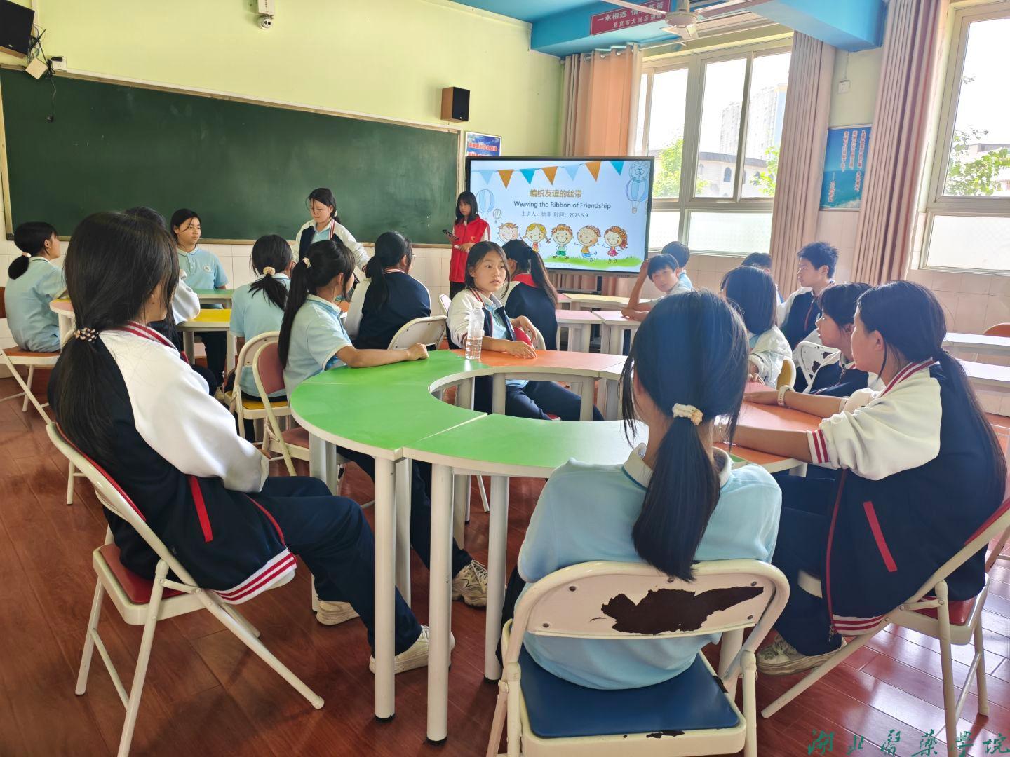 本网讯(通讯员 周茹欣)为提升青少年人际交往能力,助力构建和谐校园环境,5月9日下午,太阳集团tyc33455心灵导航同心志愿服务队“愈见初心”实践队走进茅箭中学,为八年级学生开展“编制友谊的丝带”人际关系主题团体辅导活动,通过趣味互动与专业引导,为中学生们带来一场充满温暖与启发的心灵成长课。