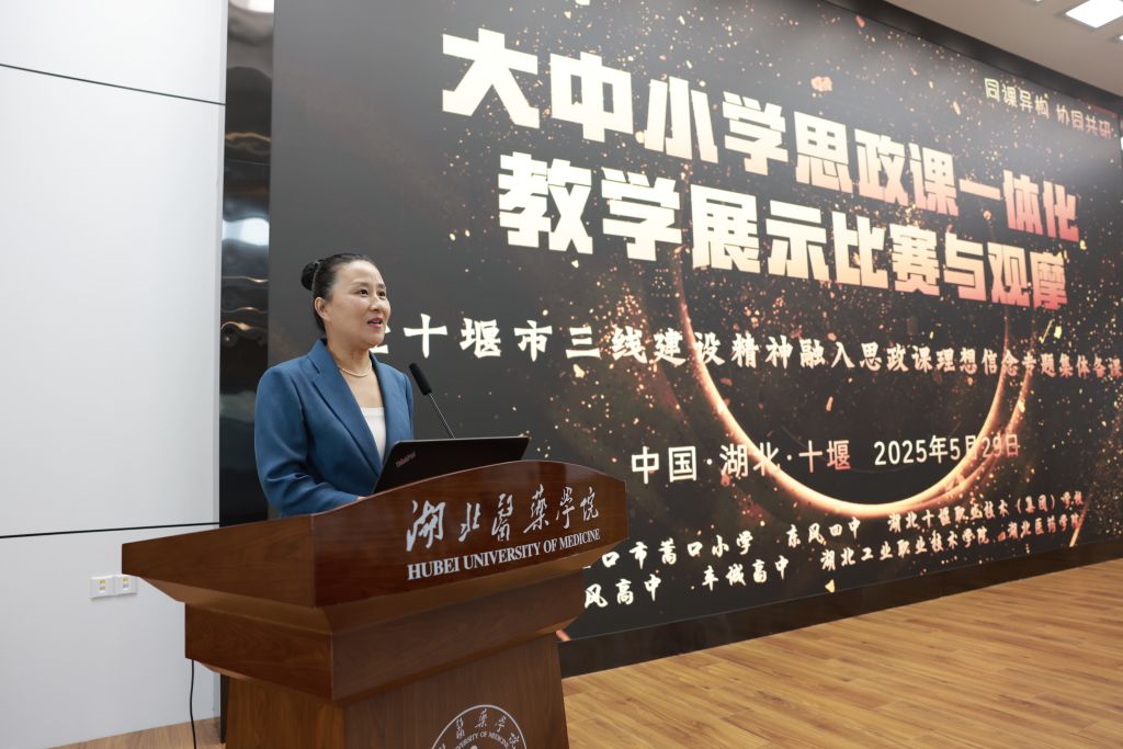 本网讯(通讯员 彭惜芹)为深入贯彻落实习近平总书记关于学校思政课建设的重要指示精神,扎实推进大中小学思政课一体化建设,5月29日下午,大中小学思政课一体化“同课异构 协同共研”教学展示比赛暨十堰市“三线建设精神融入思政课理想信念”专题集体备课活动,在tyc33455cc太阳成集团公卫大楼二楼学术报告厅举行。tyc33455cc太阳成集团党委常委、副校长谭艳,市委教育工委专职副书记、市教育局党组副书记、副局长汤莉,市社科联副主席温明,市委宣传部副部长周义波出席活动。参加本次活动的还有各成员单位分管思政课领导及教师代表、太阳集团tyc33455全体教师,活动由太阳集团tyc33455副院长孙磊主持。