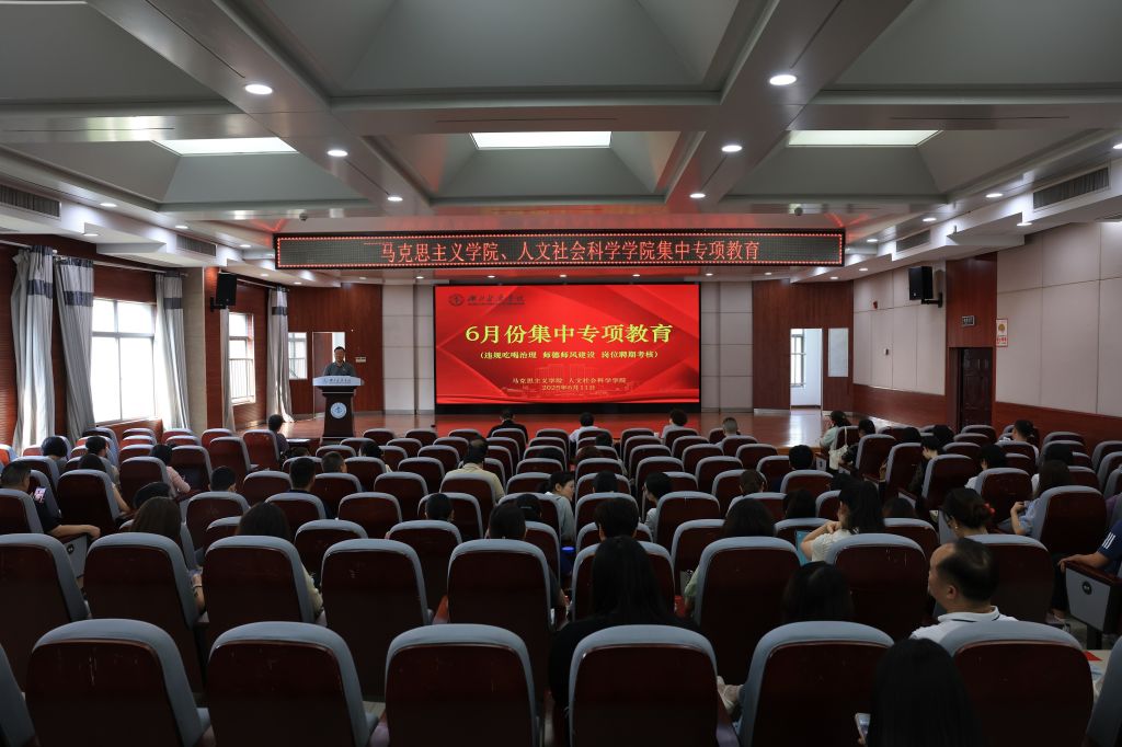 本网讯(通讯员 鲍晓宇)6月11日上午,太阳集团tyc33455、人文社会科学学院在8号楼5楼报告厅开展集中专项教育,两院全体教职工参会。会议由太阳集团tyc33455、人文社会科学学院党委书记孔祥清主持。