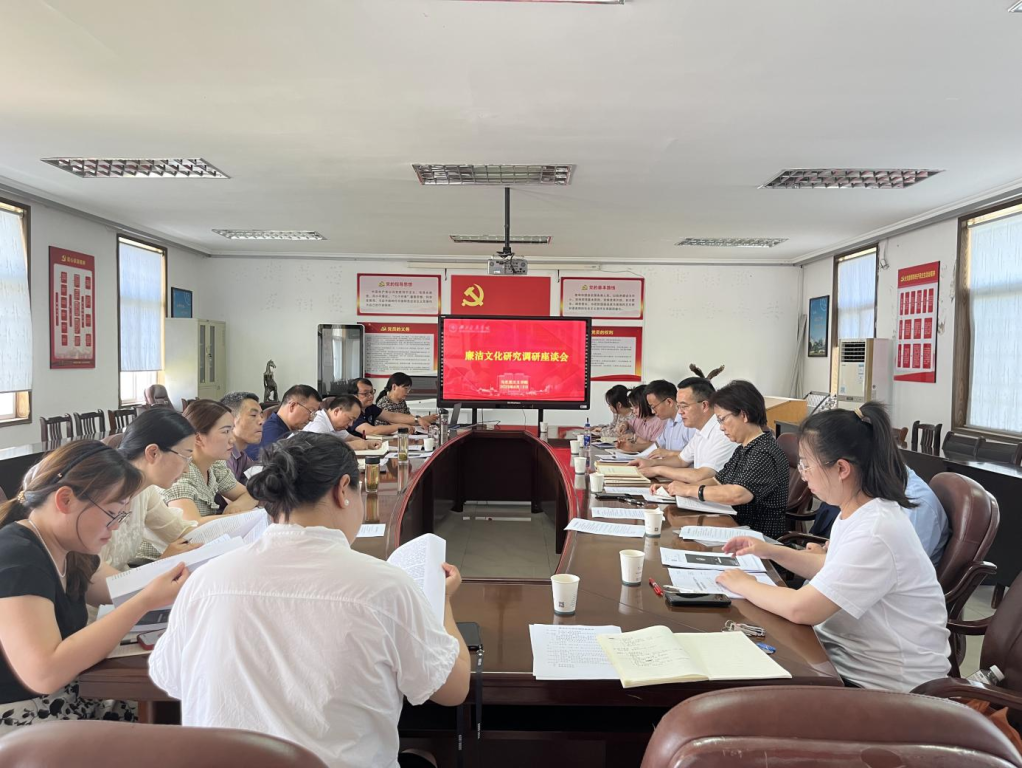 徐荣在马院四楼会议室主持召开了廉洁文化研究座谈会。党委宣传部陈建龙部长介绍了学校廉洁文化建设情况及重点工作思路;太阳集团tyc33455党委书记孔祥清会汇报了廉洁文化研究中心建设、2025年工作开展情况及今后工作设想,太阳集团tyc33455院长陈全新、副院长孙磊做了补充发言;廉洁文化研究创新中心2025年度立项课题的9名课题负责人分别汇报了课题研究进展情况。