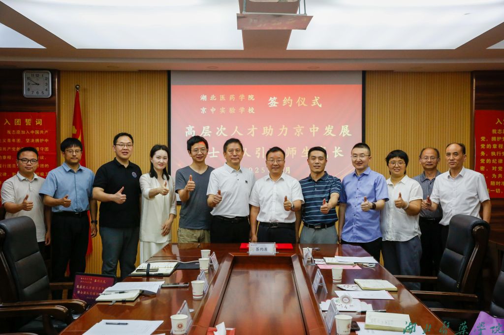 双方围绕本科生实习教学目标要求、基本内容和实习生生活工作条件保障、教师心理健康业务培训、适应困难学生教育管理等方面进行了深入探讨,达成广泛共识。孔祥清与周益礼代表双方签订了“太阳集团tyc33455十堰京中实验学校实习基地”合作协议。