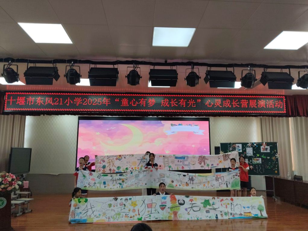 21小学活动最后一天,集中展示了5天活动成果,包括现场展演心理剧《学会说不》、《折星光》以及诗朗诵《一切如其所是》,小学生们通过生动形象的演绎,声情并茂的诵读展示同学们在成长营中的收获与成长。通过心理情景剧的这种表现形式引导孩子们如何维持健康关系,拒绝不合理的要求以及怎样追逐梦想。诗朗诵则教会孩子们学会接纳,接纳事情的发生发展,接纳自己的情绪,接纳真实的自我,以平和包容的心态去面对生活中的一切。
