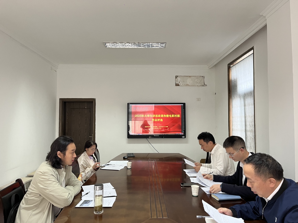 本网讯(通讯员 彭惜芹)为深入学习贯彻习近平总书记对学校思政课建设的重要讲话和重要指示批示精神,全面落实新时代学校思政课建设推进会精神,为充分发挥 “大思政课” 实践教学基地育人作用,创新新时代伟大变革融入思政课的路径方法,调动我校学生学习思政课的积极性、主动性、创造性。6月份马克思主义学院联合校党委宣传部、团委联合发布了开展大学生讲思政课公开课展示活动与 “我心中的思政课” 微电影展示活动作品征集的通知,针对收集上来的作品,9月23日下午,在学院一楼会议室开展了2025年大学生讲思政课和微电影评选活动,活动由院长陈全新主持。