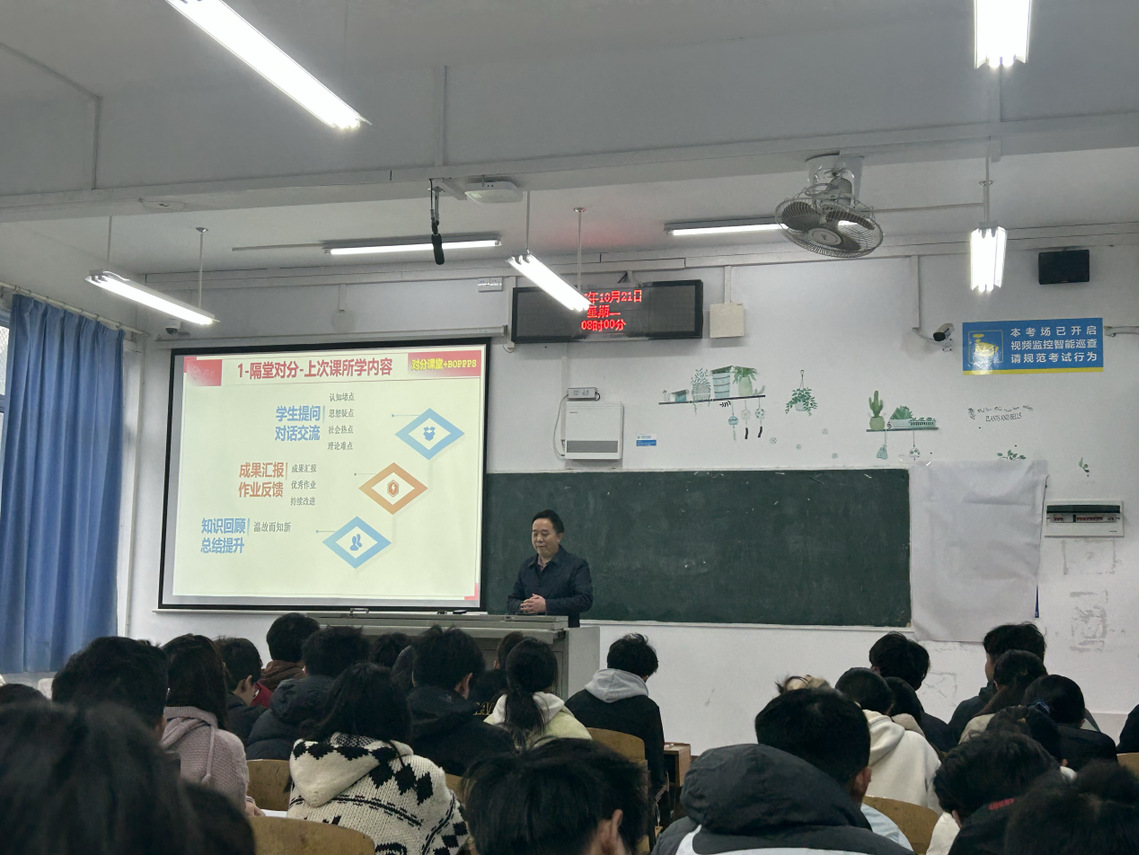 陈全新教授采用对分课堂教学模式,对《德法》课程进行了创新教学。课程开始,陈教授进行隔堂对分,包括知识回顾与总结提升、成果汇报与作业反馈、学生提问与对话交流等环节。在知识回顾与总结提升部分,陈教授通过“如何科学评价人生价值?”“错误人生观的危害是什么?”“联系自身,谈谈新时代大学生应当如何创造有意义的人生?”三个问题,引导学生对专题二“领悟人生真谛,把握人生方向”进行了回顾与总结。