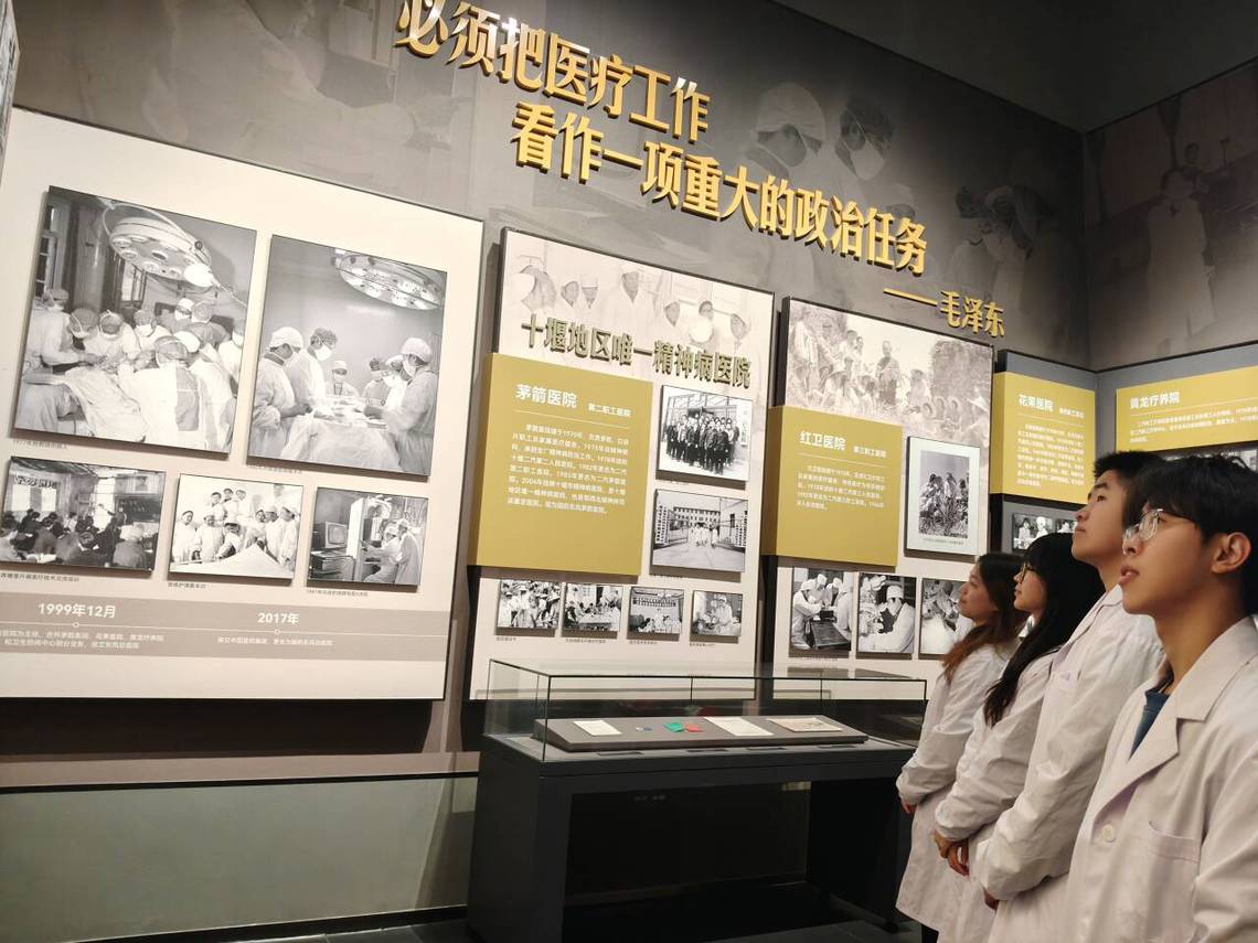 (图1:医学生在东风汽车博物馆内重温医学生誓词)