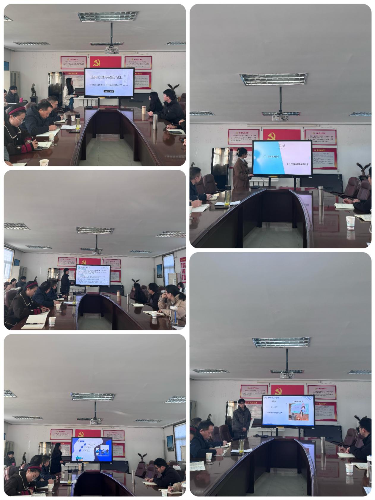 会议伊始,2023级、2024级研究生围绕实习情况展开汇报。来自十堰市中医医院(十堰市精神卫生中心)、太和医院睡眠心身医学中心、国药东风茅箭医院(十堰市精神病医院)、十堰市第一中学、汉江技师学院等实习基地的学生代表,通过PPT形式依次分享了实习主要内容、实践收获体会及反思总结,并就临床心理干预、心理健康教育活动设计、患者沟通技巧等实务经验进行了深入交流。部分同学结合实习案例,探讨了心理学理论在实际工作中的应用与转化,展现了扎实的专业素养和问题解决能力。