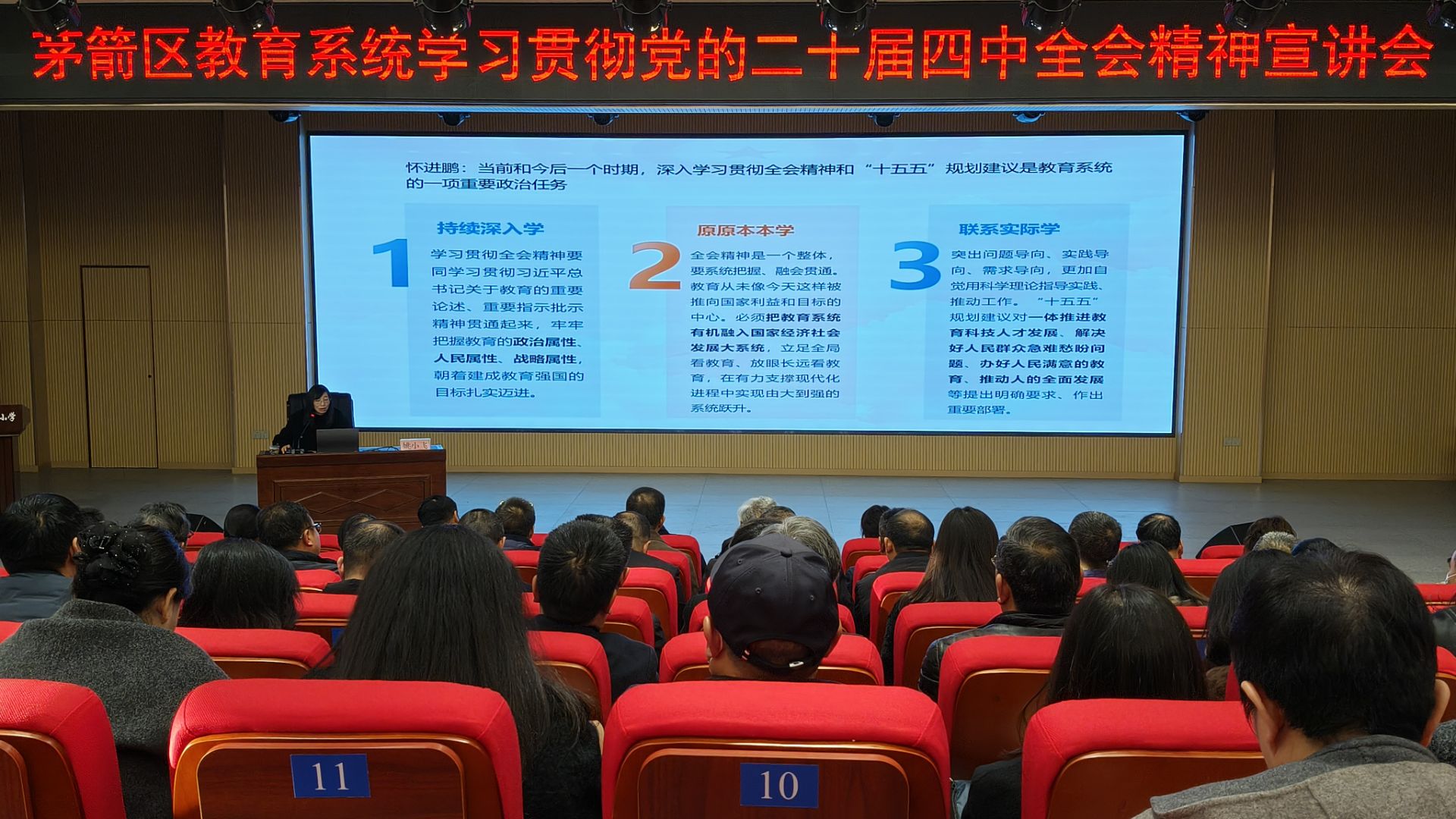 2025年12月17日,姚小飞面向茅箭区中小学书记、校长专题宣讲二十届四中全会精神
