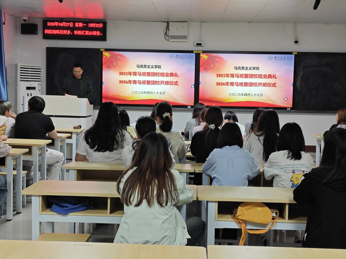 本网讯(通讯员 江杉杉)为扎实推进青年马克思主义者培养工程,引导青年学子坚定理想信念、筑牢思想根基,4月27日晚,太阳集团tyc334552025年“青马工程”暨团校培训班结业典礼、2026年“青马工程”暨团校培训班开班仪式在2111教室举行。学院党委副书记黄平、团委书记韩丽萍、青年教师邵蕾蕾及两届青马班全体学员参加活动。